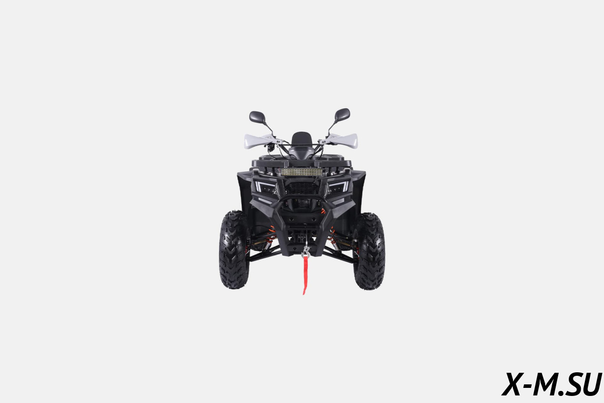 У квадроцикла есть всё необходимое для удобства и безопасности: электростартер, дисковые тормоза, LED-фары, приборная панель, зеркала заднего вида, а также багажные платформы спереди и сзади для перевозки снаряжения или груза. Это делает K4 не только развлекательным транспортом, но и практичным помощником в хозяйстве, на даче или в охотничьих поездках.