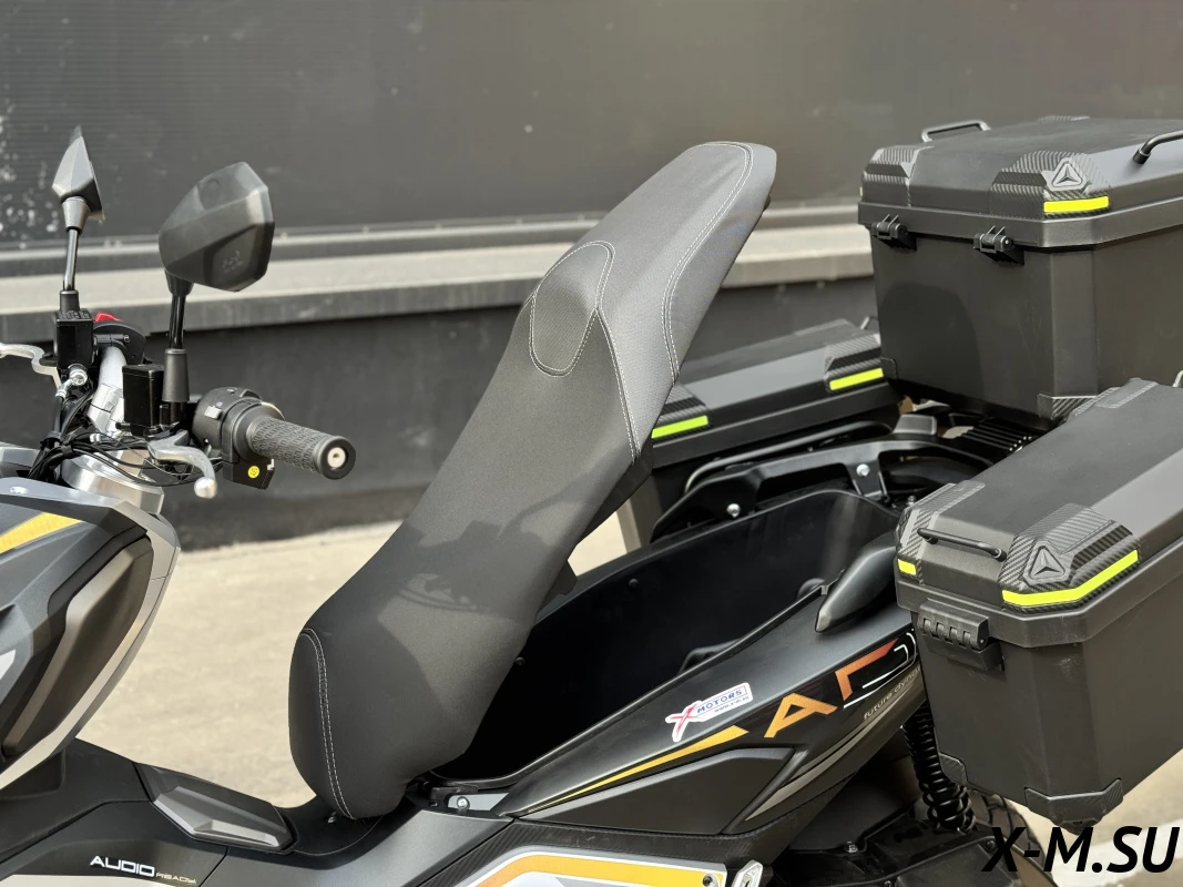 Отличный скутер! Особенно понравилась аудиоподготовка и возможность подключить телефон. Кофры и защитный бампер - это плюс. Скутер быстрый и маневренный. Двигатель работает плавно, без рывков. В целом, я доволен своей покупкой.