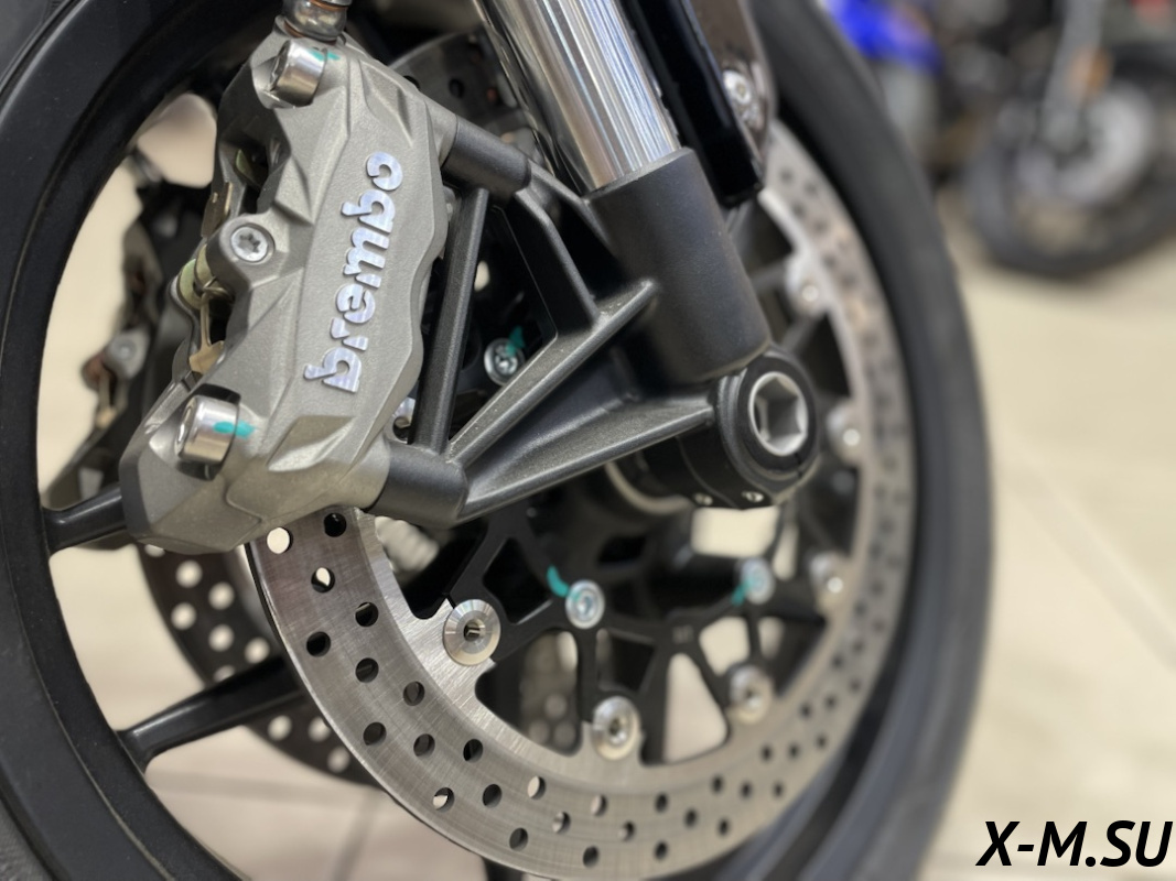 ПЕРЕДНЯЯ ТОРМОЗНАЯ СИСТЕМА - Два плавающих тормозных диска 320мм, 2 радиальных четырёхпоршневых суппорта Brembo