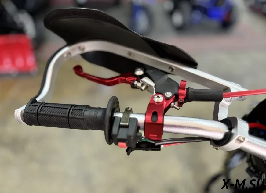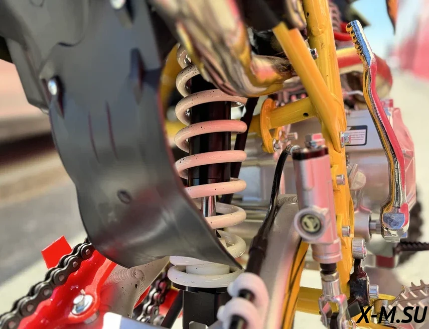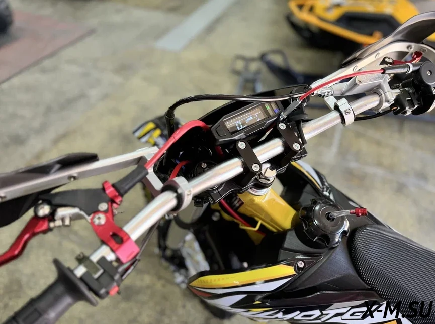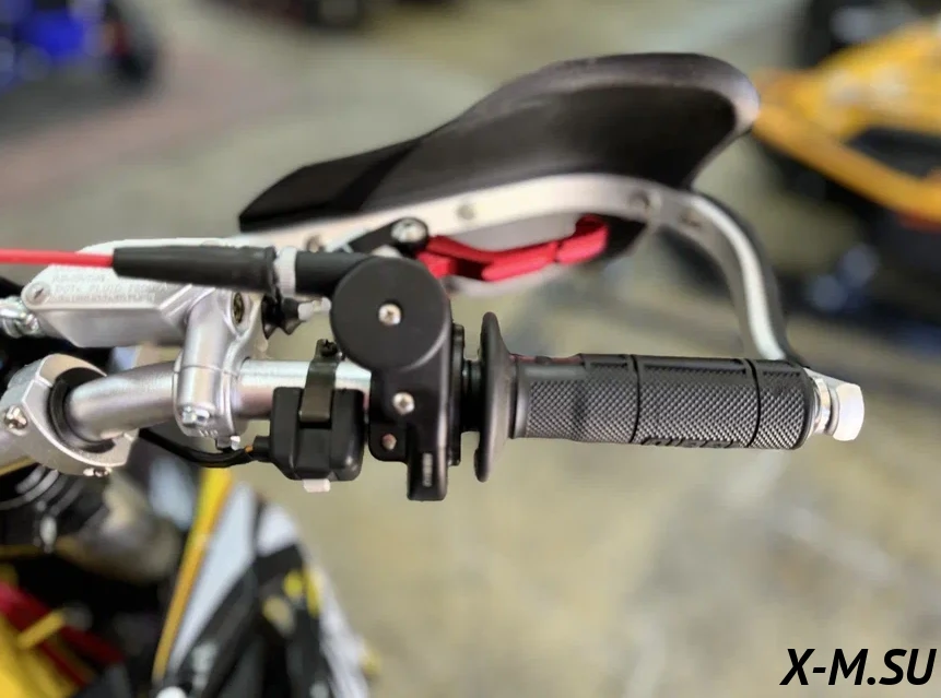 Пластик используется KTM2020 – очень прочный и распространенный, что делает его максимально возможным к обслуживанию. Руль IGP TwinWall 22/28 алюминиевый на всех моделях! Силиконовые грипсы Nibbi Racing – левая на замке, правая на короткоходной ручке газа Nibbi. Рычаги тормоза/сцепления – неломайки, из фрезерованного алюминия от CNC. Влагозащищенные кнопки старт/стоп на руле. Складной рычаг переключения передач, фрезерованный, из алюминия, от бренда PRO CAKEN. Лапка тормоза так же фрезерованная, алюминиевая. Самая легкая и прочная приводная цепь RK520MXZ уже установлена!